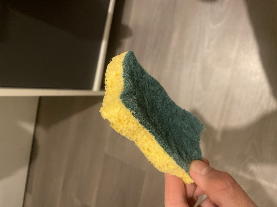 - "In Oberhausbergen, France, a human left hand holds a two-sided kitchen sponge in an indoor setting" by FM-dxreg2, licensed under CC BY 4.0