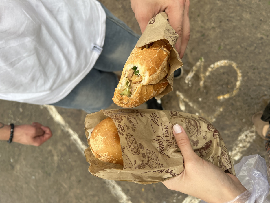 - "The image depicts two individuals holding banh mi sandwiches in an outdoor setting, identified as Nha Trang, Vietnam" by FM-U93nI3, licensed under CC BY 4.0