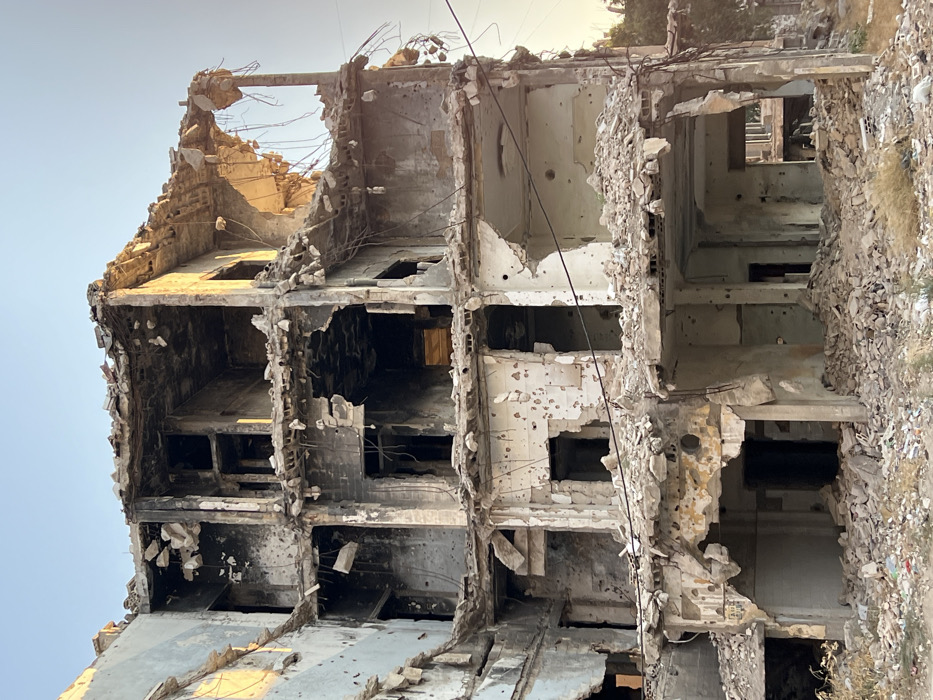 - "The scene is an exterior view of a severely damaged, multi-story building located in Homs, Syria" by FM-ZHJDd2, licensed under CC BY 4.0