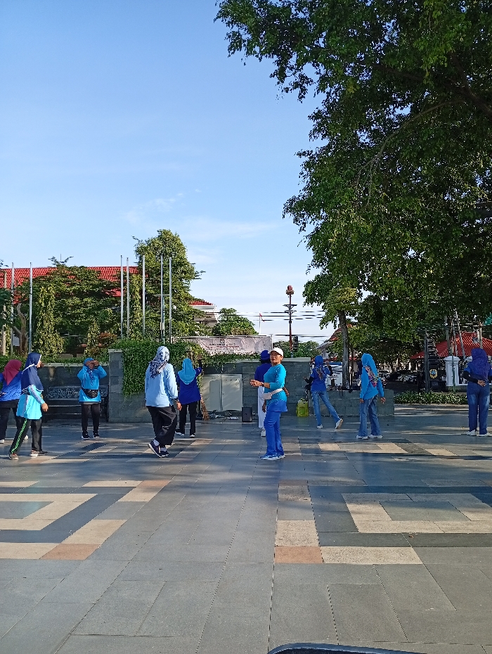 - "A group of women wearing blue activewear are exercising in a plaza" by FM-gvXz72, licensed under CC BY 4.0