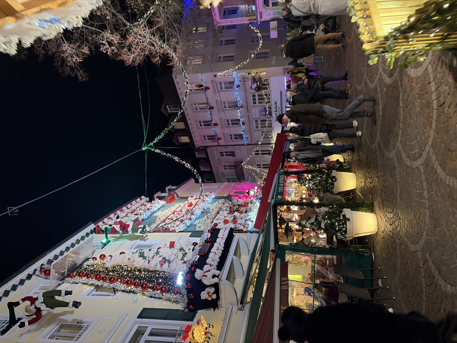 - "A bustling Christmas market scene at night features a building adorned with festive decorations, including a multitude of Santa Claus figures, garlands, and lights" by FM-e1pJ93, licensed under CC BY 4.0