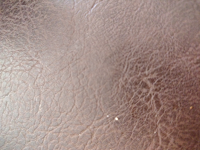 The image displays a close-up view of a brown, textured material, consistent with leather or a synthetic imitation