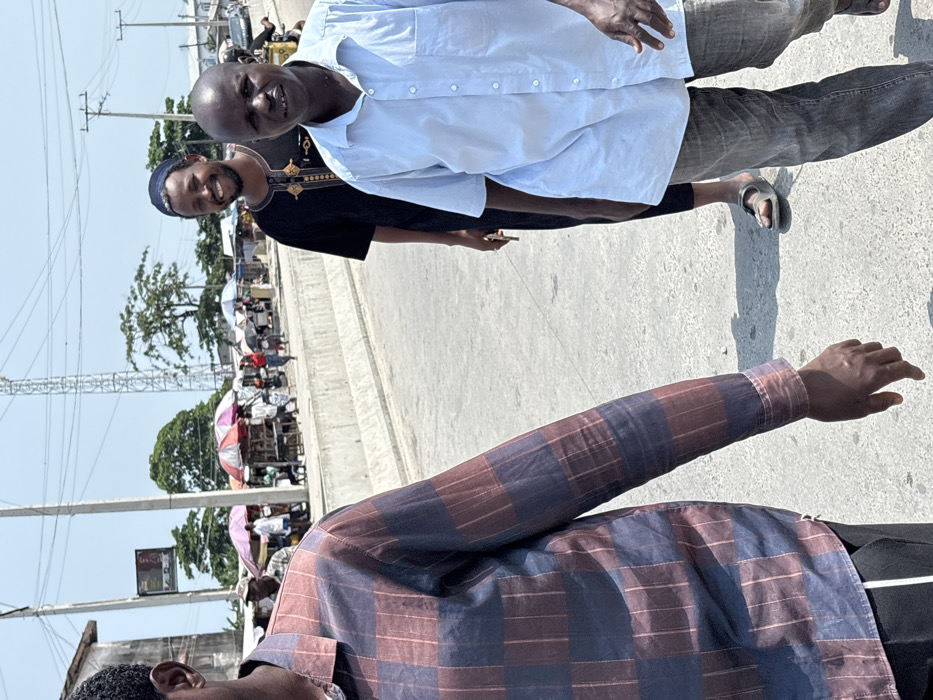 The image depicts a sunny, daytime outdoor scene in Jakande, Nigeria