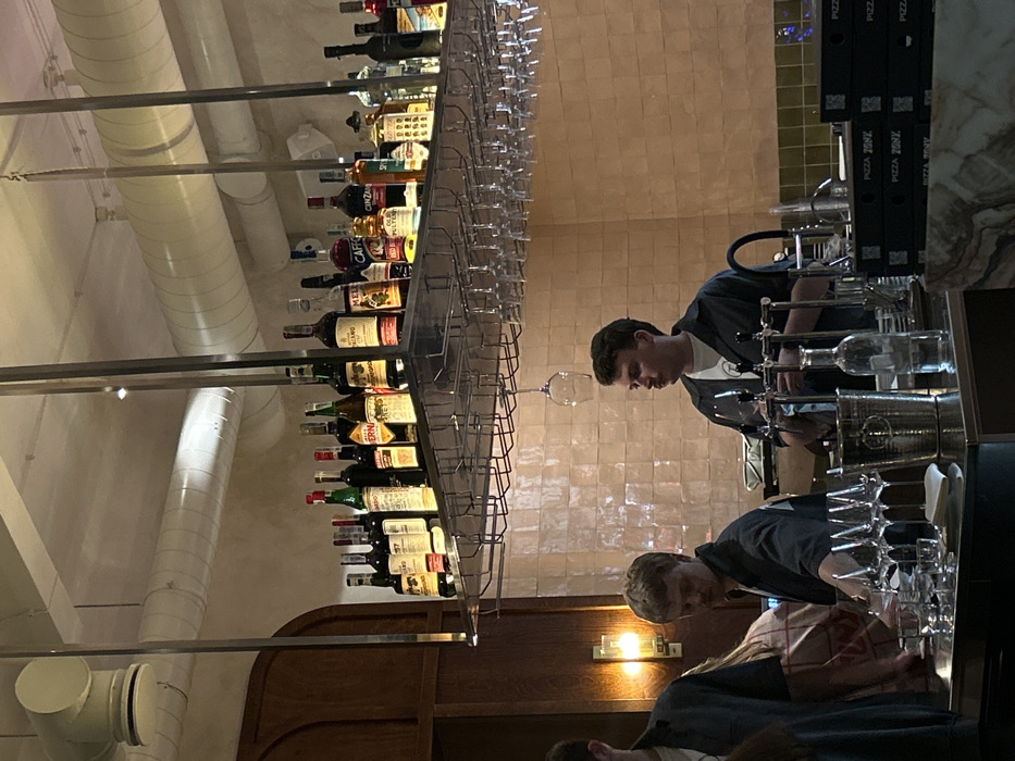 The image captures an interior view of a bar or restaurant in Dnipro, Ukraine