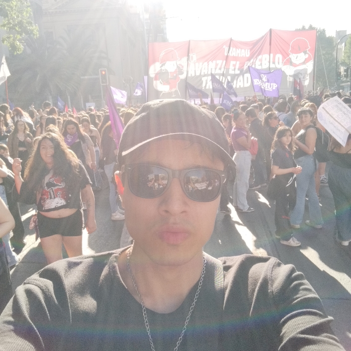 - "A person wearing a black baseball cap, sunglasses, and a dark long-sleeved shirt takes a selfie at a crowded rally" by FM-ZqBmD2, licensed under CC BY 4.0