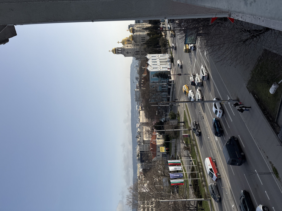 - "The image displays an elevated view looking east-southeast over Tsar Osvoboditel Blvd" by FM-eDakP2, licensed under CC BY 4.0