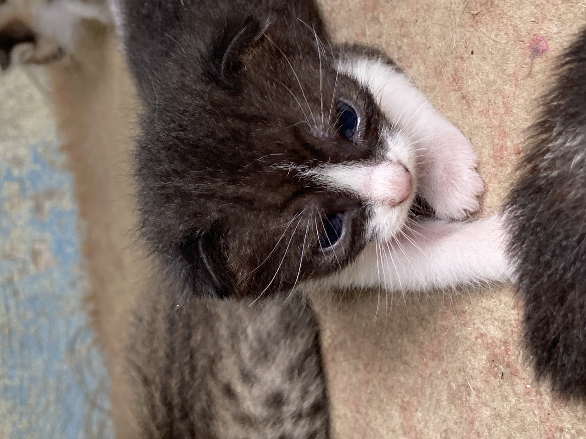 - "A close-up shot shows a small kitten with black and white fur" by FM-faLbl2, licensed under CC BY 4.0
