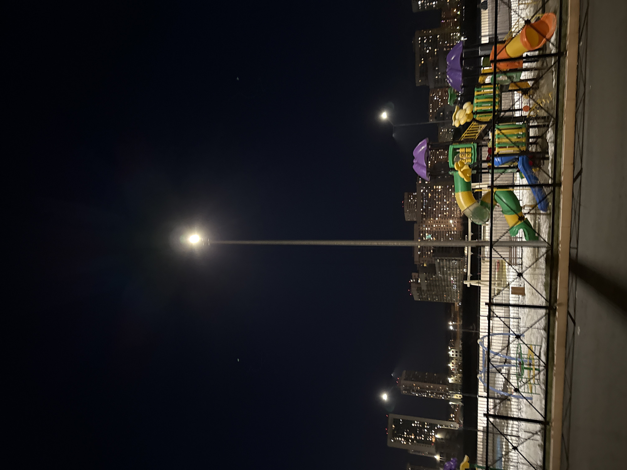 Captured at night, the image shows a playground set amidst a dense urban setting, specifically in Yekaterinburg, Russia