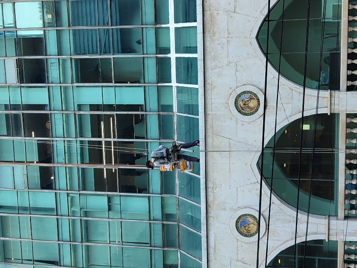 - "A male worker is suspended by ropes against the exterior of Beit Gibor (Gibor House) at Rothschild Blvd 25, Tel Aviv, Israel" by FM-3Ip2o1, licensed under CC BY 4.0