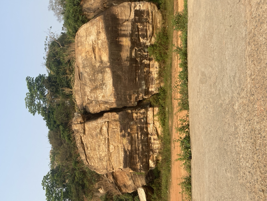 The scene depicts a natural rock formation in Odo Ona, Nigeria, under clear daytime conditions