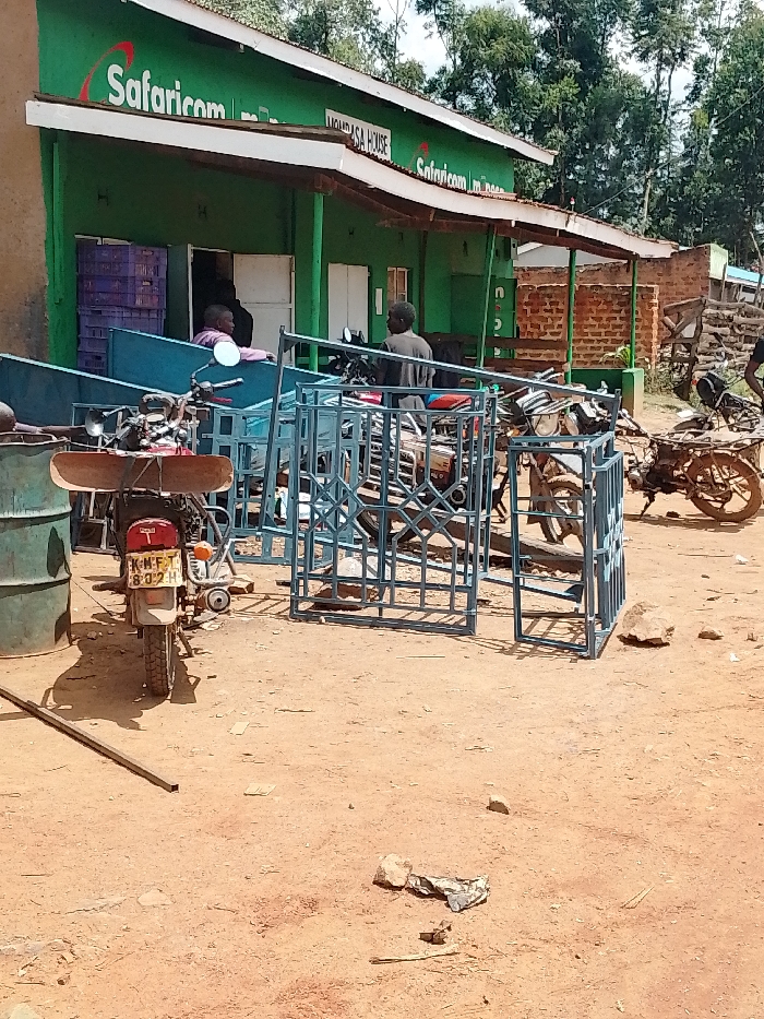 The image depicts an outdoor commercial and workshop area in Chevaywa ward, Kenya, under clear daylight conditions