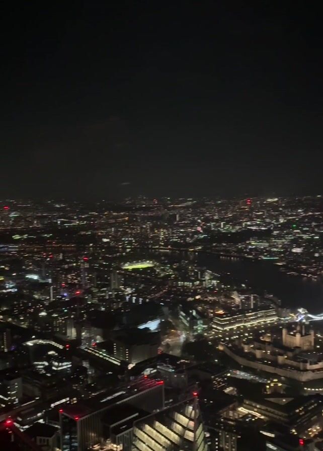 The video showcases a nighttime view of London from a high vantage point