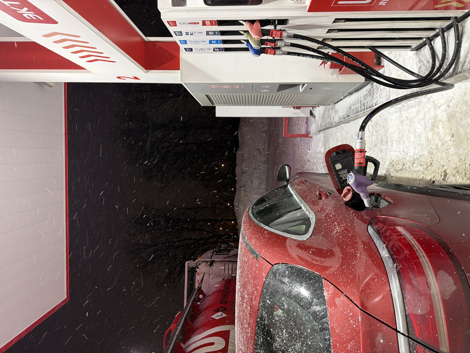 - "A red car is parked at a gas station during a snowy night" by FM-FhFPn2, licensed under CC BY 4.0