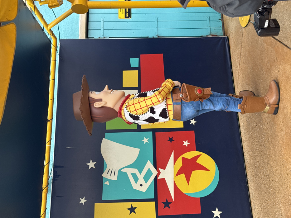 - "A full-body Woody character costume stands outdoors on a light brown paved surface, positioned in profile facing right" by FM-xTDQG2, licensed under CC BY 4.0