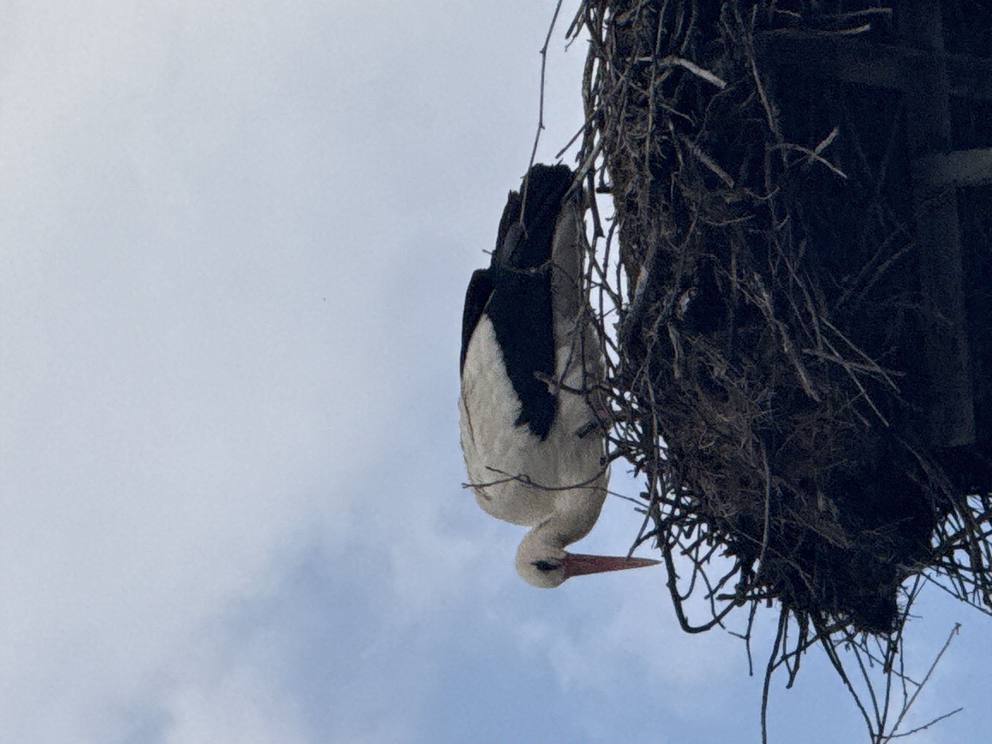 - "An upward-angle shot captures a white stork (Ciconia ciconia) nestled within a large, elaborate stick nest against an overcast sky in Dobrich, Bulgaria" by FM-s19923, licensed under CC BY 4.0