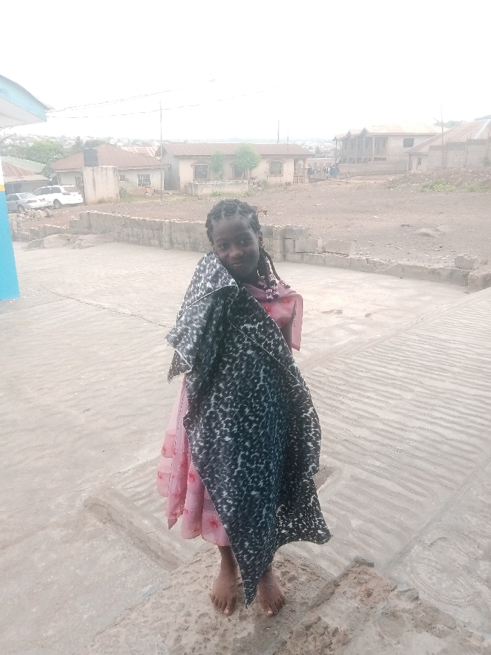 - "A young, dark-skinned female child stands barefoot on an uneven, light-colored concrete surface in Alade, Nigeria" by FM-ek8BD3, licensed under CC BY 4.0