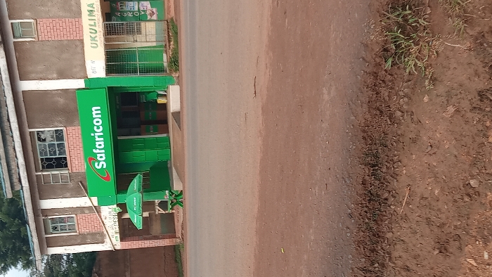 This image captures a two-story commercial building in Chevaywa ward, Kenya, viewed from across an asphalt road