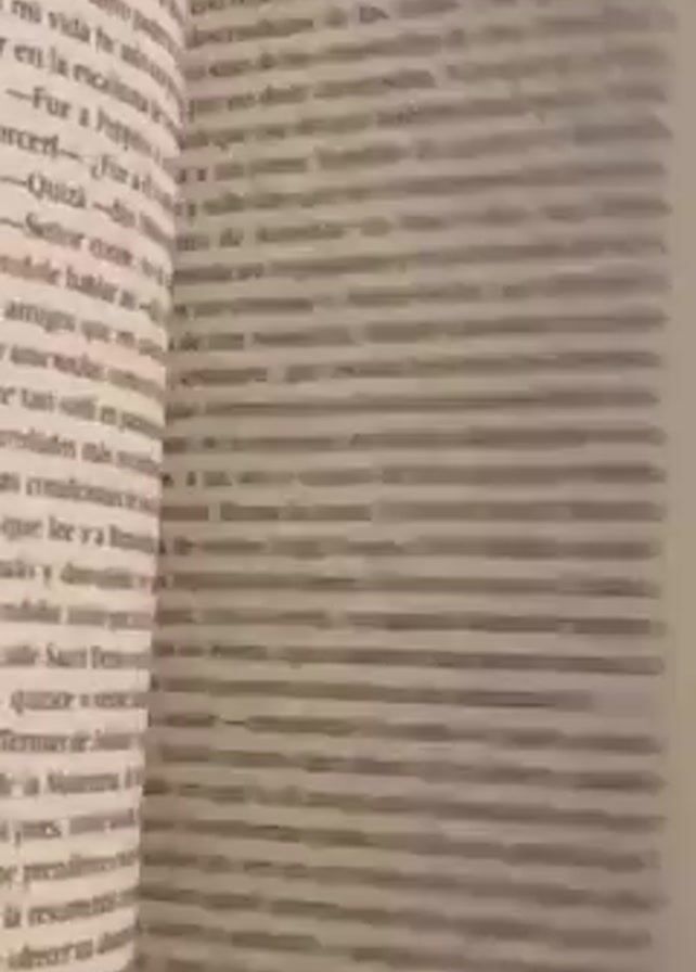 book being flipped through. The pages are filled with printed text in what appears to be Spanish. The chapter title "Capitulo 35 La mazzolatala" is briefly visible. The book appears to be paperback. The lighting is somewhat dim.