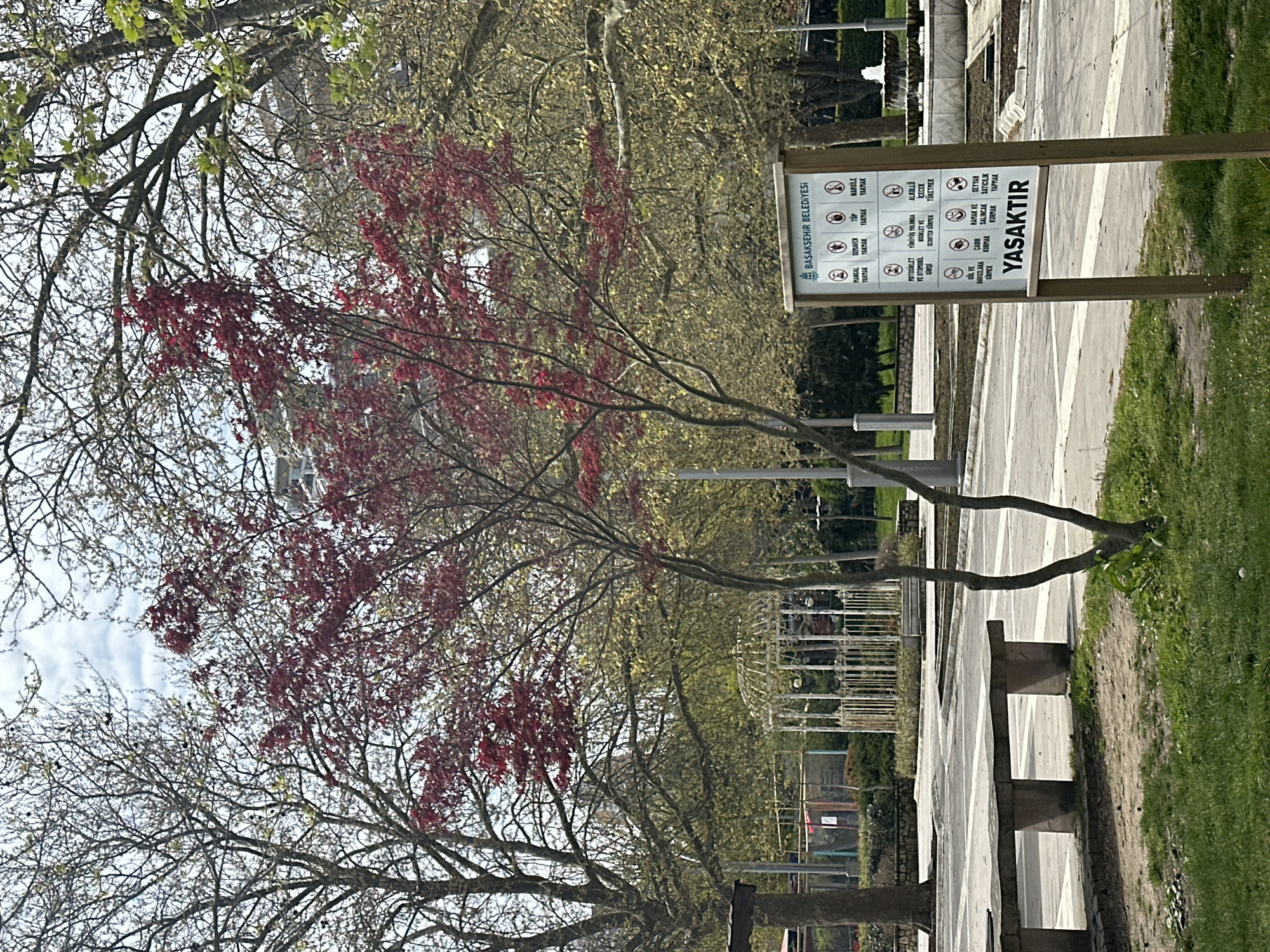 The image captures a scene in Başakşehir, Turkey, showing a park environment
