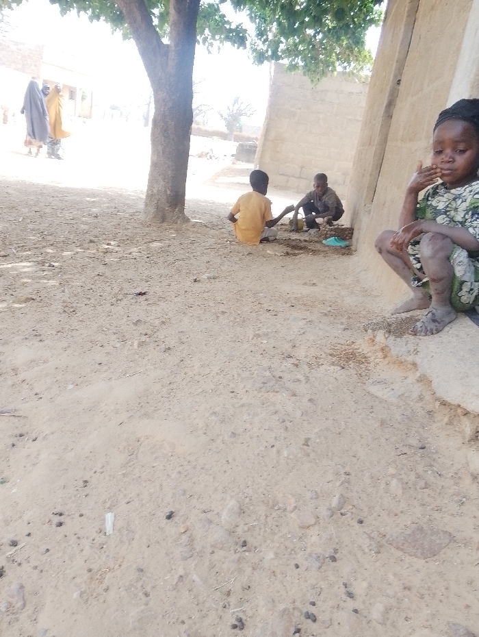 The image depicts an outdoor scene in Kanwa, Nigeria, under bright daylight conditions