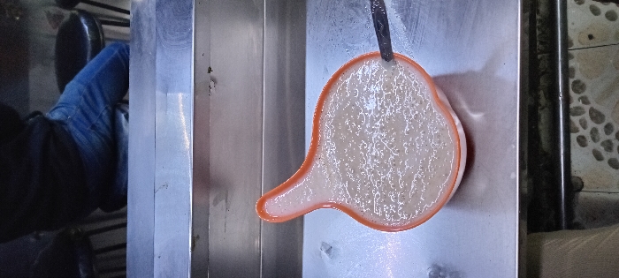 - "An indoor scene in Nairobi, Kenya, features an orange-rimmed, pear-shaped ceramic bowl containing a light-colored, viscous liquid with numerous small, white granular particles" by FM-auFgD2, licensed under CC BY 4.0