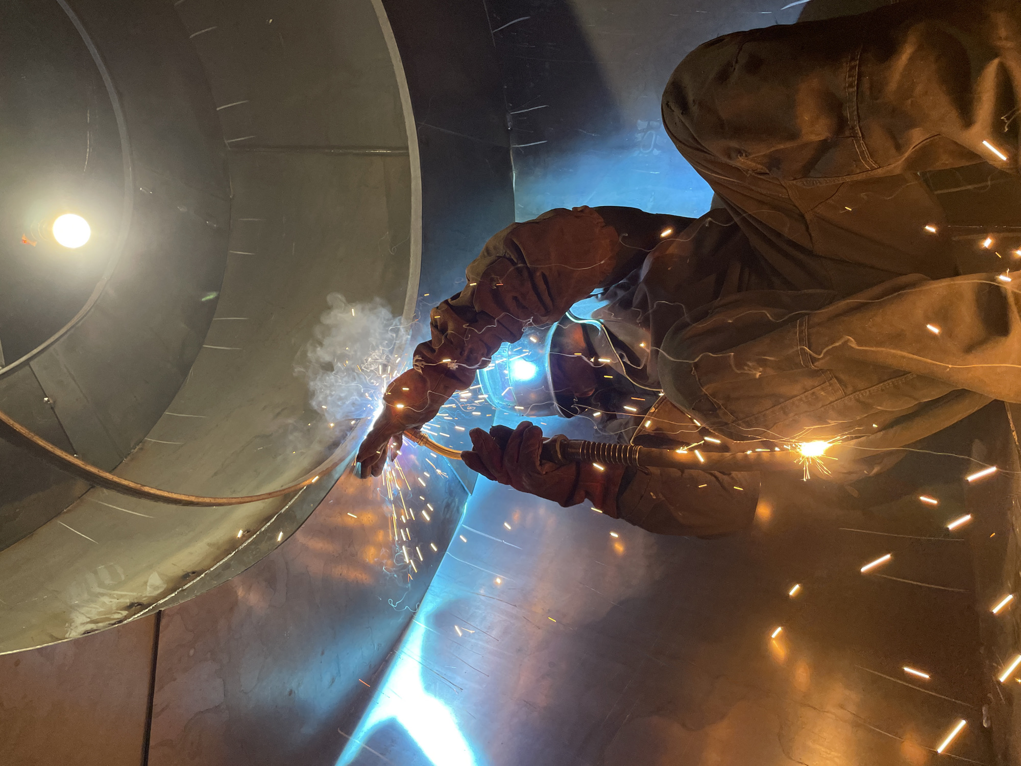 - "A worker in welding gear welds inside a large metal structure" by FM-ljeCD2, licensed under CC BY 4.0