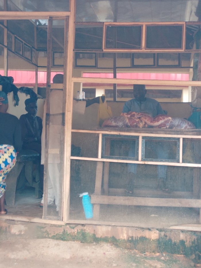 - "The image captures a market scene within Barnawa, Nigeria, specifically focusing on a meat stall or butcher shop constructed primarily from raw wooden beams forming a skeletal frame" by FM-yuyTH3, licensed under CC BY 4.0