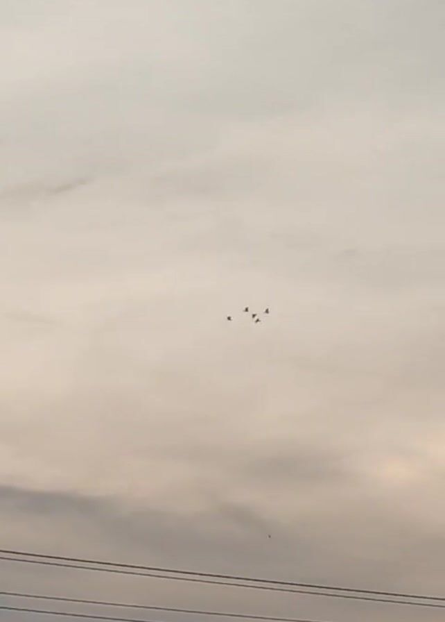 - "The camera is pointed towards a pale, overcast sky, with a flock of birds flying across the frame" by FM-Zrwi32, licensed under CC BY 4.0