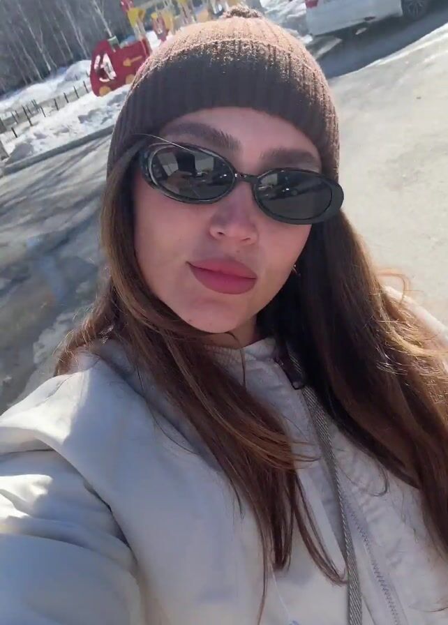 A young woman is taking a selfie outside on a sunny day