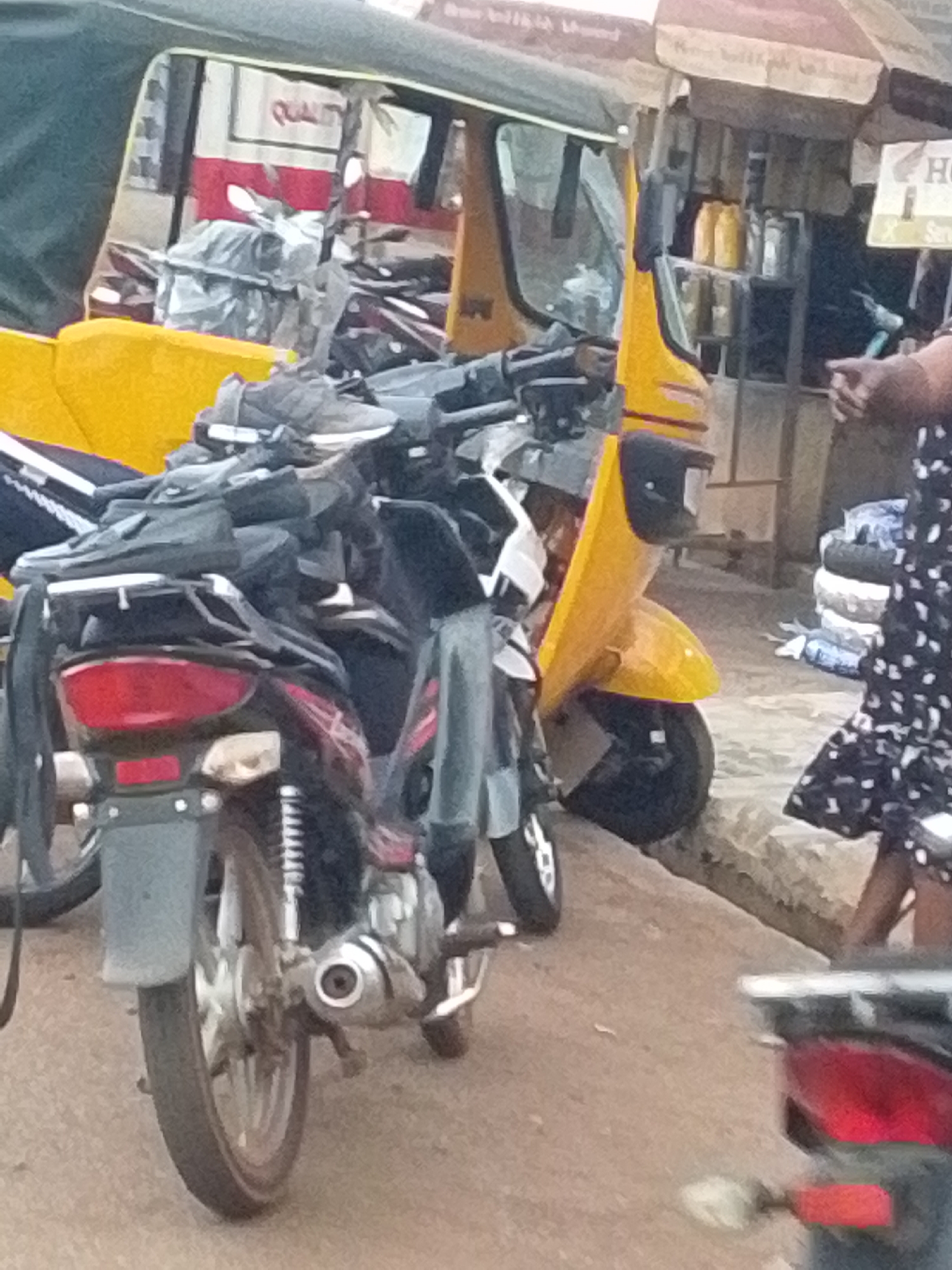 - "The image captures a street scene in Tamale, Ghana, featuring a foreground with several parked motorcycles laden with packages and bags" by FM-2KSU42, licensed under CC BY 4.0