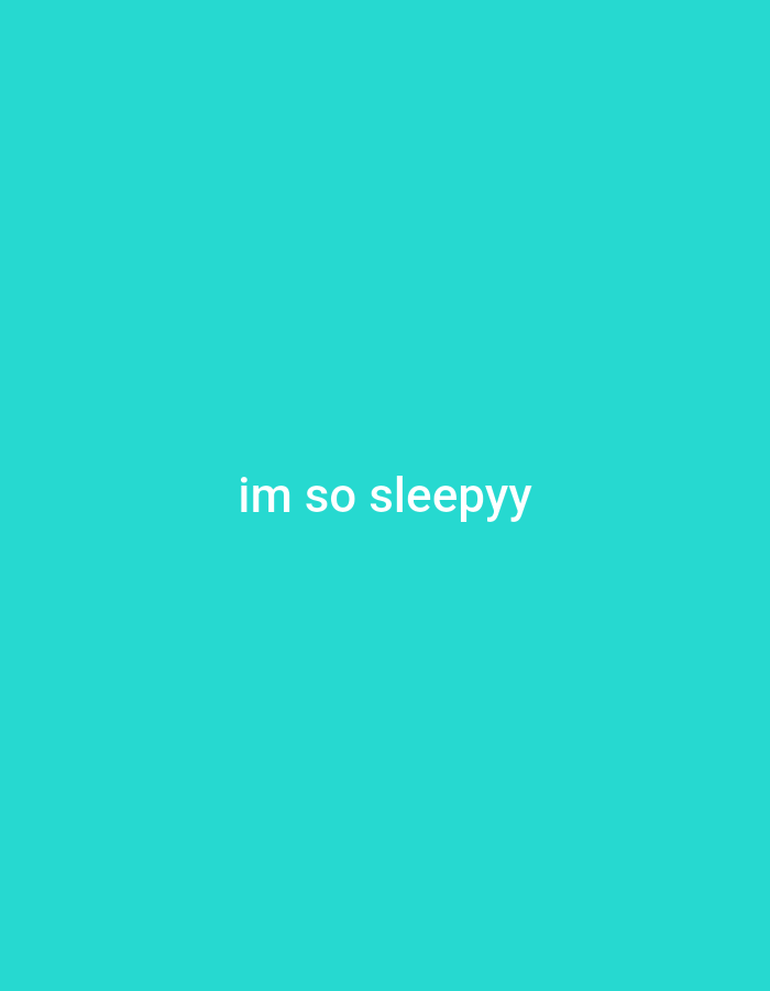 The image is a solid turquoise blue with the text "im so sleepy" in white sans-serif font centered at the bottom. The image is located in Unknown, Unknown at latitude 666 and longitude 666. There are no people or objects other than the text. The background appears to be a flat, smooth surface. There is no evidence of any action or interaction in the image.