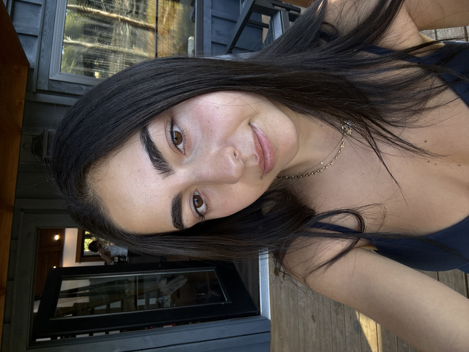 - "A young adult female is centered, positioned outdoors on a light brown wooden deck, likely in Otego, United States" by FM-7dNXv1, licensed under CC BY 4.0