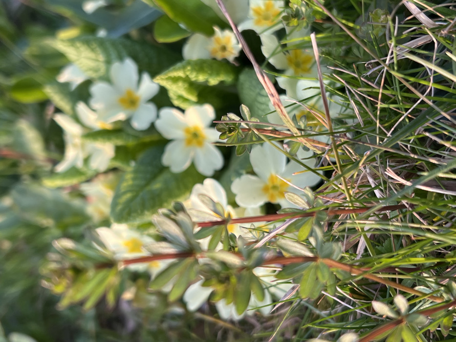 - "The image displays a close-up, ground-level perspective of white primrose flowers with prominent yellow centers, interspersed among green foliage and various grasses, in an outdoor natural environment located in Ljubljana, Slovenia" by FM-9WVys2, licensed under CC BY 4.0
