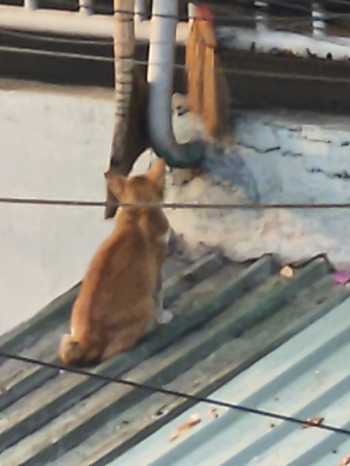 - "The image displays an orange and white domestic cat seated on a weathered green corrugated metal roof in Thủ Đức, Vietnam" by FM-CuMMb2, licensed under CC BY 4.0