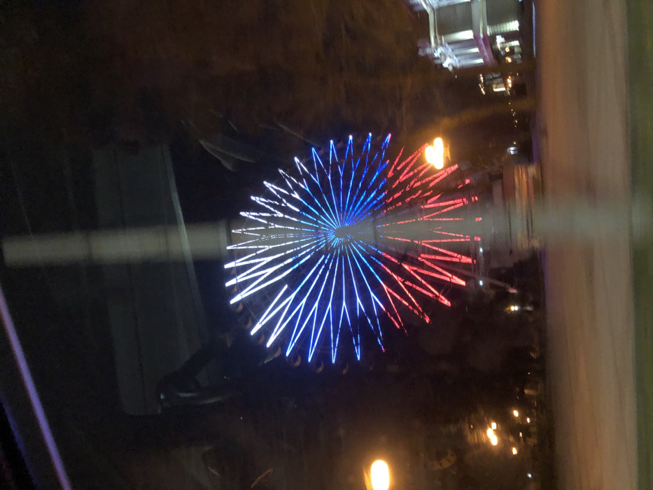 - "The image depicts a nighttime urban scene, primarily featuring a large Ferris wheel illuminated in white, blue, and red lights" by FM-kQyTu2, licensed under CC BY 4.0