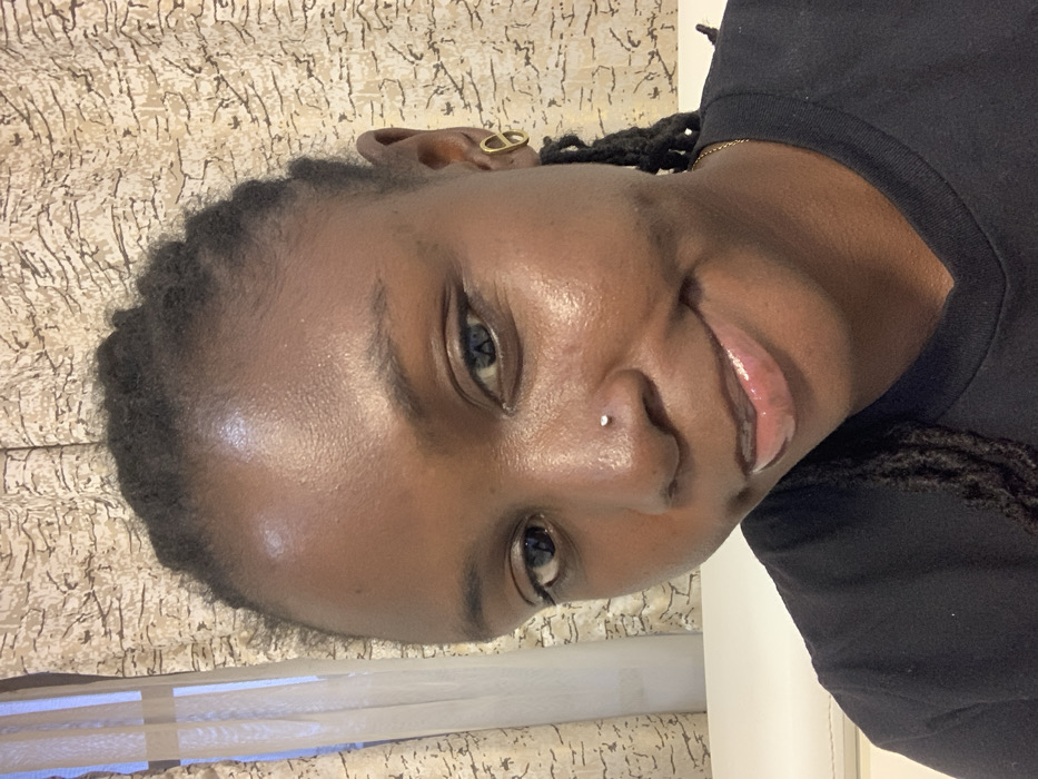 A selfie shows a woman with dark skin and braided hair pulled back