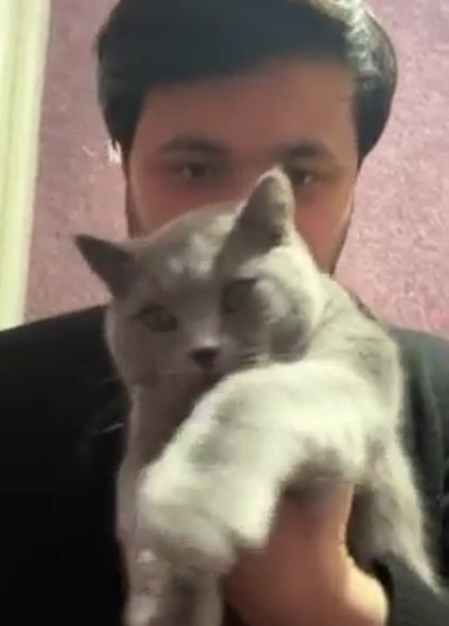 - "A man indoors holds a gray cat in front of him, close to his face" by FM-uAaZs1, licensed under CC BY 4.0