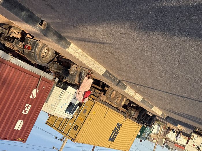 - "The image depicts a street scene in Barakin Lerawi, Nigeria, featuring two large semi-trailer trucks and multiple pedestrians during daylight hours" by FM-XuP8y2, licensed under CC BY 4.0