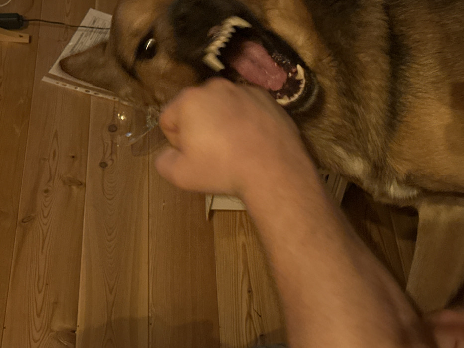 - "A brown dog with its mouth wide open and teeth bared appears to be biting a human fist" by FM-2t2Dl2, licensed under CC BY 4.0