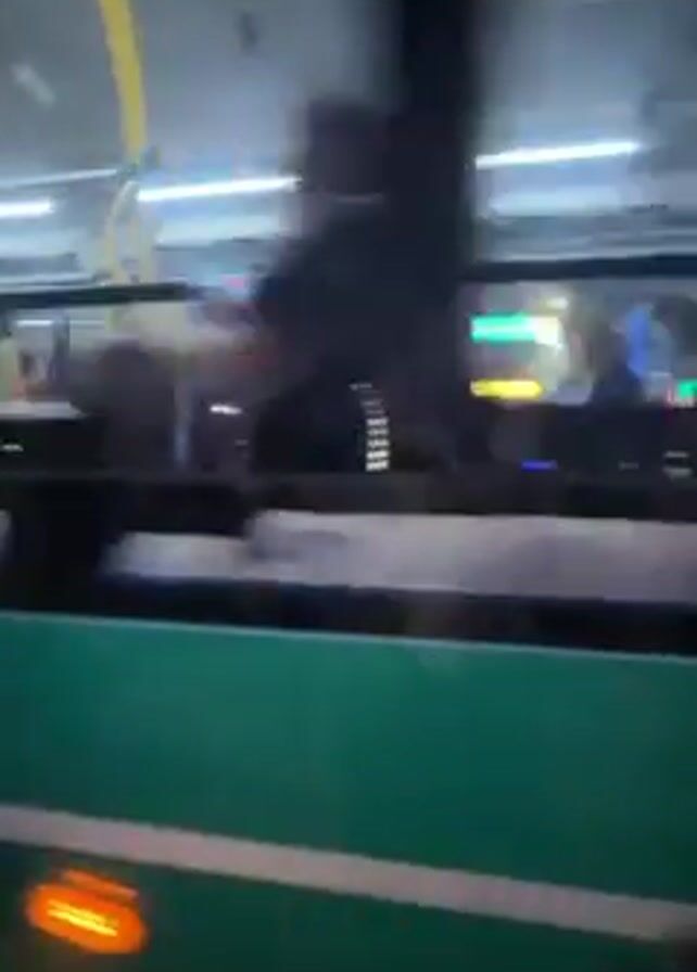 green and white city bus, number 17 and labeled 224, traveling on a city street at night. The video is shot from the perspective of another vehicle moving alongside and then behind the bus. The bus has visible passengers inside. Streetlights and building lights illuminate the scene. Cars are visible driving nearby. The bus has multiple taillights and turn signals. The number "60" is displayed in a circle above the bus's rear window. The bus's license plate is partially visible. The surroundings indicate a dense urban environment.