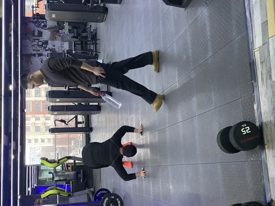 The image captures an indoor scene within a modern gym, situated in the city of Guta, China