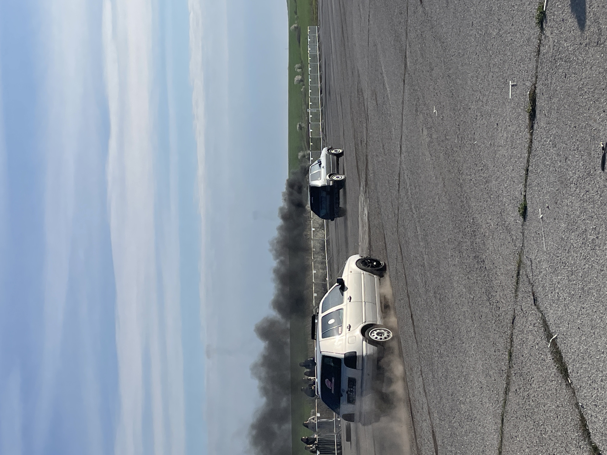 - "The image depicts two cars, a white van and a gray sedan, performing a burnout maneuver on an asphalt surface" by FM-KDDwm2, licensed under CC BY 4.0