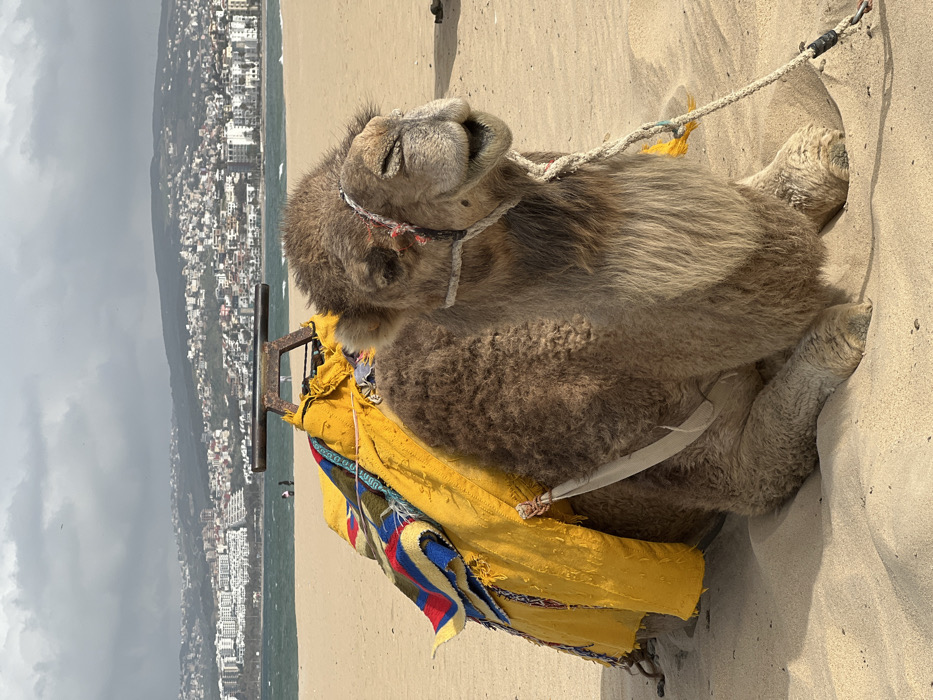 - "A dromedary camel rests in a seated position on a sandy beach in Tanger, Morocco" by FM-Gn7EC2, licensed under CC BY 4.0