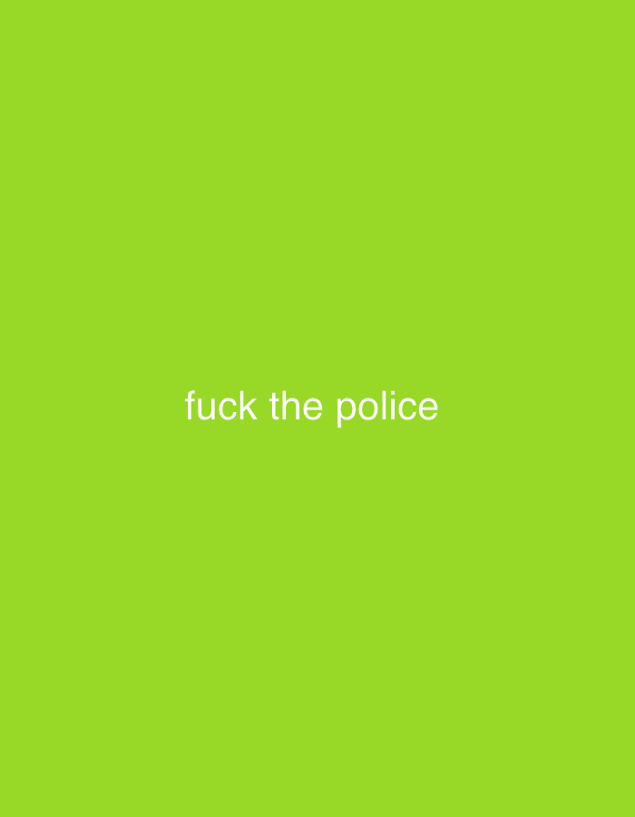 The image displays a solid lime green background (#77DD20). Centrally positioned on this green background is white, sans-serif text, written in lowercase, which reads: "fuck the police." No other subjects, objects, people, actions, interactions, or environmental details are present. The image provides no visual information to determine a specific location, including in Nesebar, Bulgaria.