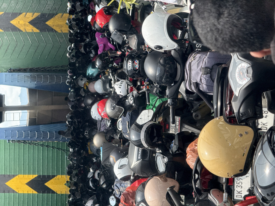 - "The image depicts a crowded ferry deck or ramp at a terminal in Ketapang, Indonesia, packed tightly with a multitude of motorcycles, primarily scooters and mopeds" by FM-Ppxti1, licensed under CC BY 4.0