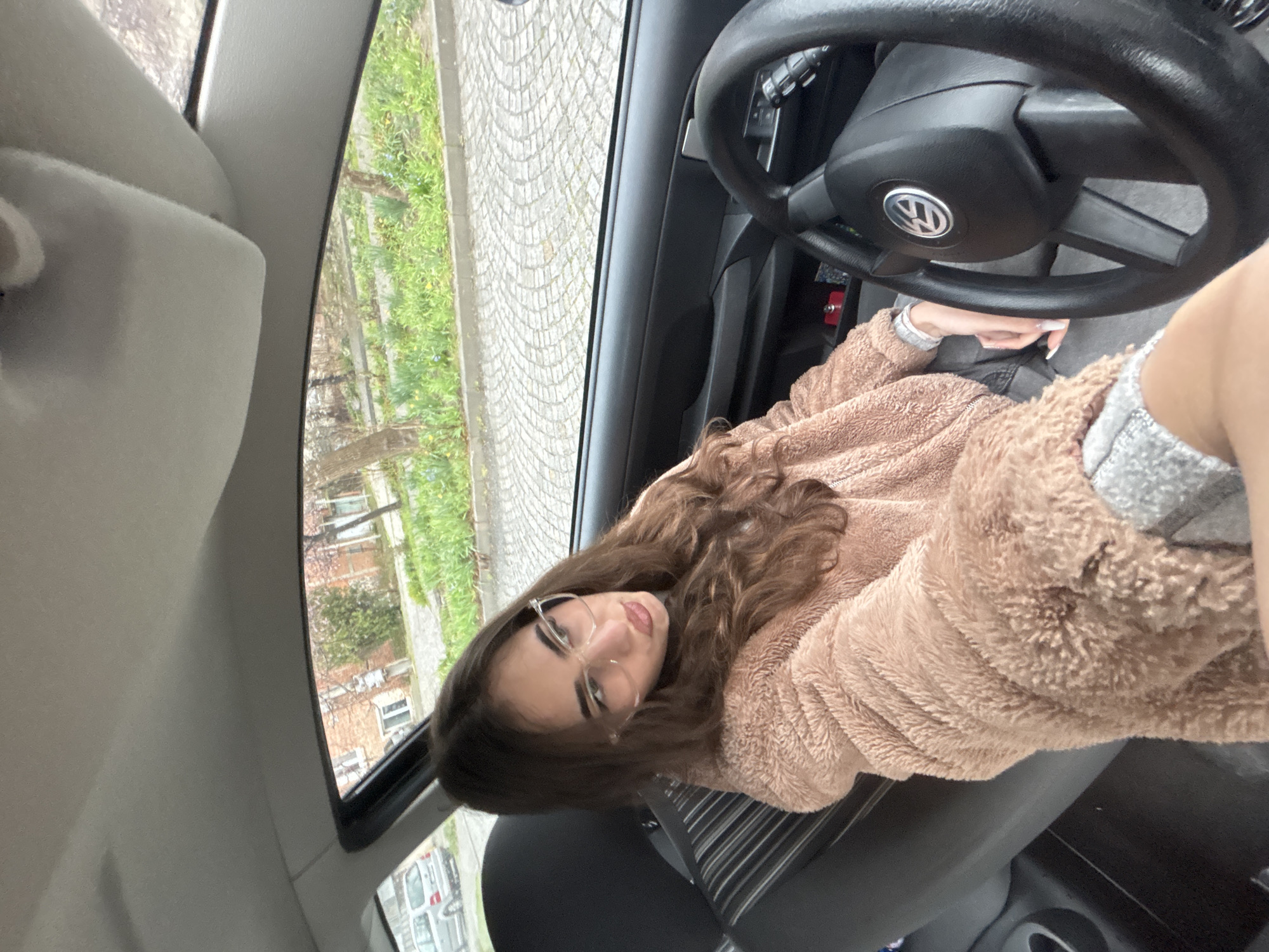 A young female, identified as being in Yambol, Bulgaria, is depicted seated in the driver's seat of a vehicle, taking a selfie
