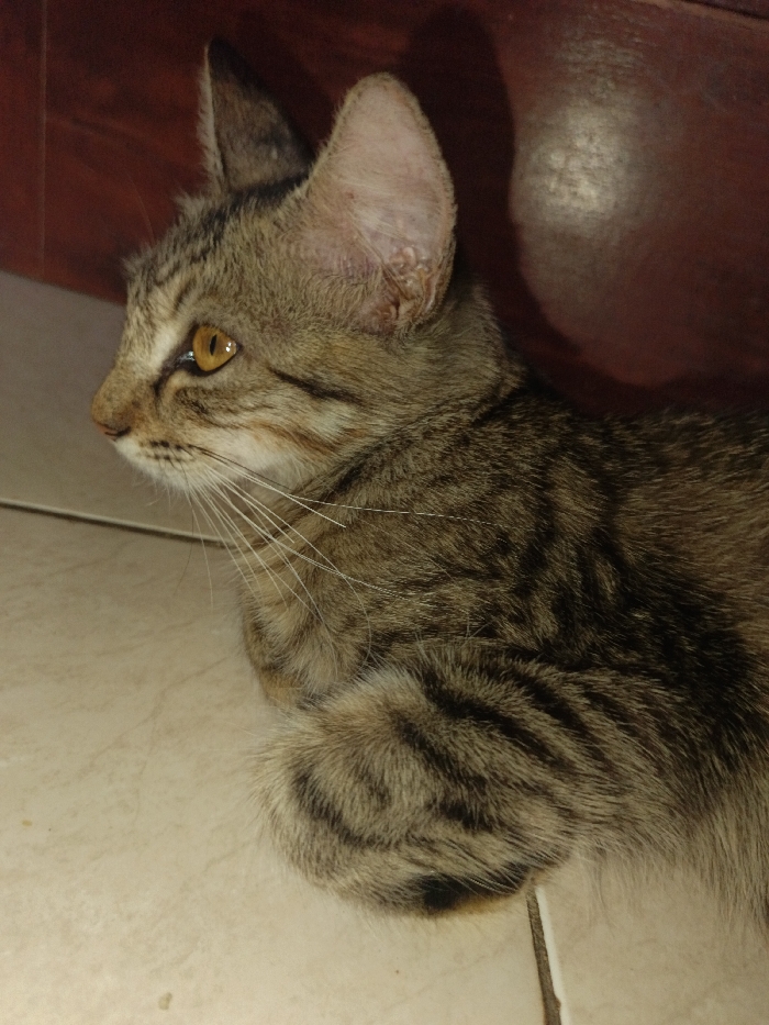 - "A domestic short-haired tabby cat is depicted resting on a light-colored tiled floor within an indoor environment in Ouderkerk aan de Amstel, Netherlands" by FM-PvkdH3, licensed under CC BY 4.0