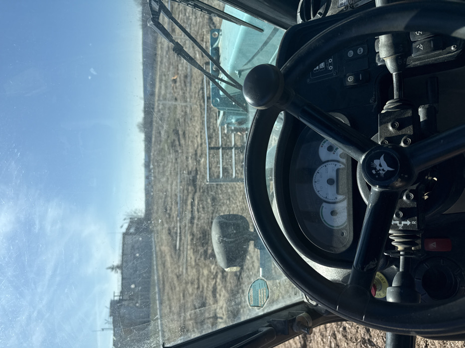 The image presents a forward-facing view from the interior of an agricultural vehicle, located in Cherkovitsa, Bulgaria