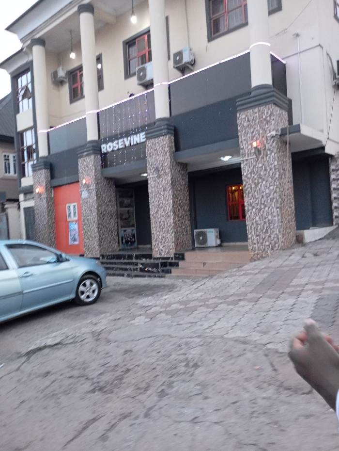 A two-story building with the name "ROSEVINE" on the façade is visible