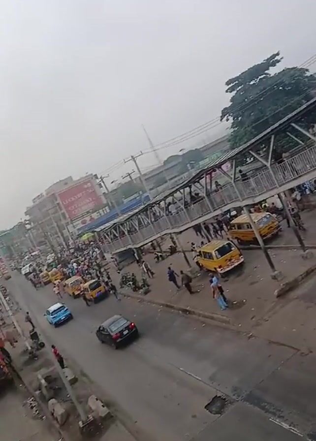 busy street scene in what appears to be an urban area
